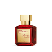 Baccarat Rouge 540 extrait de parfum intensifies the radiance of the three auras found in the eau de parfum without betraying the original inspiration. The perfumer’s mastered craft and the wisdom gained with time gave birth to this woody extrait de perfume, an ultimate accomplishment for Francis Kurkdjian. The Grandiflorum jasmine from Egypt head note gently underscores the craftsman’s voice. The hint of fire is enhanced with powdered epicurean facets of bitter almond from Morocco. Lastly, the mineral note built around ambergris is tamed with an ambery and woody accord. Adding to the intensity of the extrait, the perfume bottle also plays with light. Its aesthetic dons a brilliant red robe reminiscent of Baccarat red. Baccarat Rouge 540 Maison Francis Kurkdjian extrait de parfum embodies the profusion and fusion of elements that can only be tamed by the art of the perfumer and the wisdom gained with time.